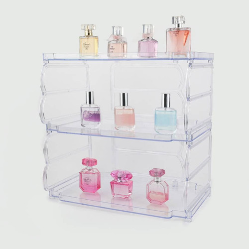 مدلهای دوطبقه و سهطبقه راف اکرولیک به شما کمک میکنند تا فضای عمودی را به بهترین شکل استفاده کنید و لوازم خود را مرتب و در دسترس نگه دارید. طراحی ساده و شفاف آنها باعث میشود با هر نوع دکور و رنگبندی هماهنگ باشند و جلوهای لوکس به محیط بدهند.