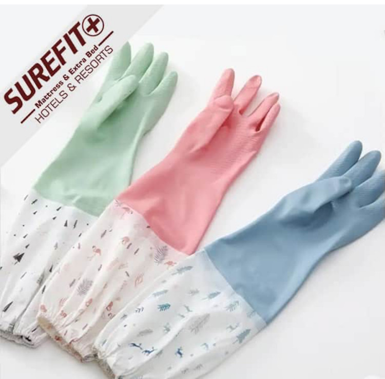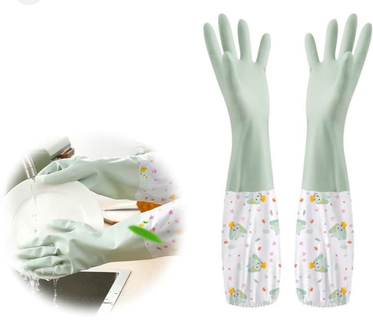 دستکش های ضد حساسیت ساق بلند آشپزخانه محصول وارداتی میباشد که در رنگبندی متنوع و سایزبندی کوچک ، متوسط و بزرگ قابل سفارش میباشد. این دستکش ها از داخل دارای یک لایه آستر میکروی نخ پنبه میباشد که اجازه نمبدهد لاتکس دستکش با پوست دست و ناخن ها در ارتباط باشد و لذا هیچگونه حساسیتی ایجاد نمیکند و مانع از لب پر شدن لاک ناخن مبشود .همچنین آستر داخلی این دستکش مانع از انتقال حرارت و دمای بالای آب به دستان شما میگردد و لذا براحتی میتوانید با بدون هیچگونه مشکلی با آب داغ ظروف را شستشو دهید . انتهای دستکش ها دارای کش دوزی میباشد که در ناحیه بالای آرنج کیپ میشود و اجازه نمیدهد هیچگونه آبی به داخل دستکش نفوذ کند .