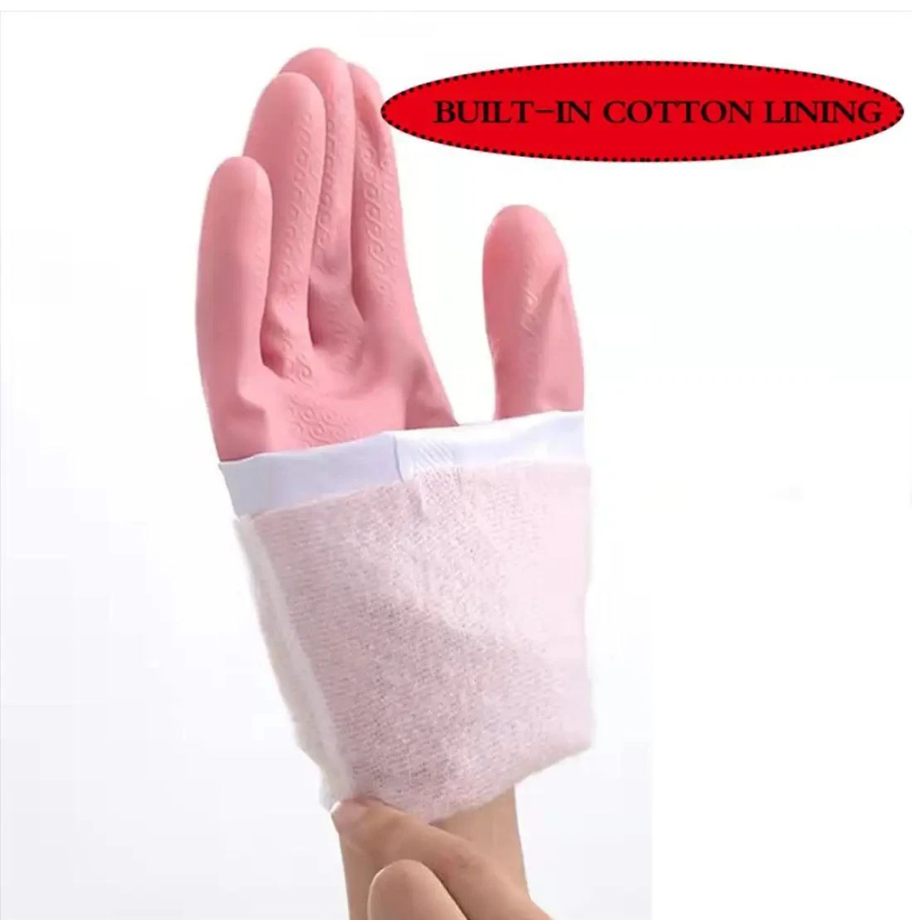 دستکش های ضد حساسیت ساق بلند آشپزخانه محصول وارداتی میباشد که در رنگبندی متنوع و سایزبندی کوچک ، متوسط و بزرگ قابل سفارش میباشد. این دستکش ها از داخل دارای یک لایه آستر میکروی نخ پنبه میباشد که اجازه نمبدهد لاتکس دستکش با پوست دست و ناخن ها در ارتباط باشد و لذا هیچگونه حساسیتی ایجاد نمیکند و مانع از لب پر شدن لاک ناخن مبشود .همچنین آستر داخلی این دستکش مانع از انتقال حرارت و دمای بالای آب به دستان شما میگردد و لذا براحتی میتوانید با بدون هیچگونه مشکلی با آب داغ ظروف را شستشو دهید . انتهای دستکش ها دارای کش دوزی میباشد که در ناحیه بالای آرنج کیپ میشود و اجازه نمیدهد هیچگونه آبی به داخل دستکش نفوذ کند .