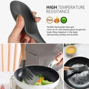 سرویس ۱۲پارچه کفگیر ملاقه سیلیکونی نسوز دسته چوبی بانبو(۲۴سری)