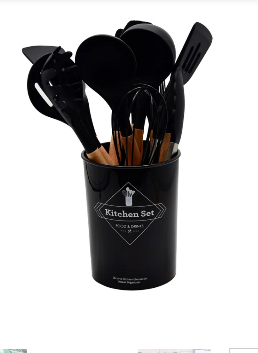 آشپزی با سرویس کفگیر و ملاقه سیلیکونی kitchenware set بسیار راحت و لذت بخش است. این ست جذاب به شما کمک میکند تا در زمان آشپزی، بهترین استفاده را از کفگیر و ملاقه داشته باشید. همچنین به راحتی نگهداری و تمیزکاری آن بپردازید. این سرویس، دارای یک سطل جهت جای گذاری کفگیر و ملاقهها است که برای نگهداری و ذخیرهسازی آنها بسیار مناسب است. با قرار دادن کفگیر و ملاقه در این سطل پس از استفاده، میتوانید از آلودگی و آلایش آشپزخانه جلوگیری کرده و همچنین آن ها را به راحتی پس از استفاده شست و تمیز کنید.