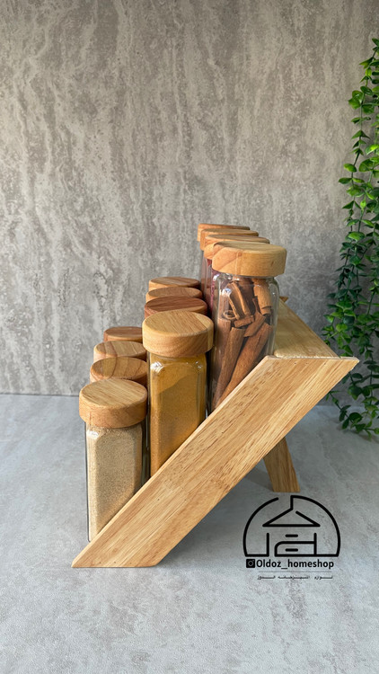 پک ۱۲تایی شیشه ادویه مکارتی درب چوبی همراه با استند چوبی دوحالته
