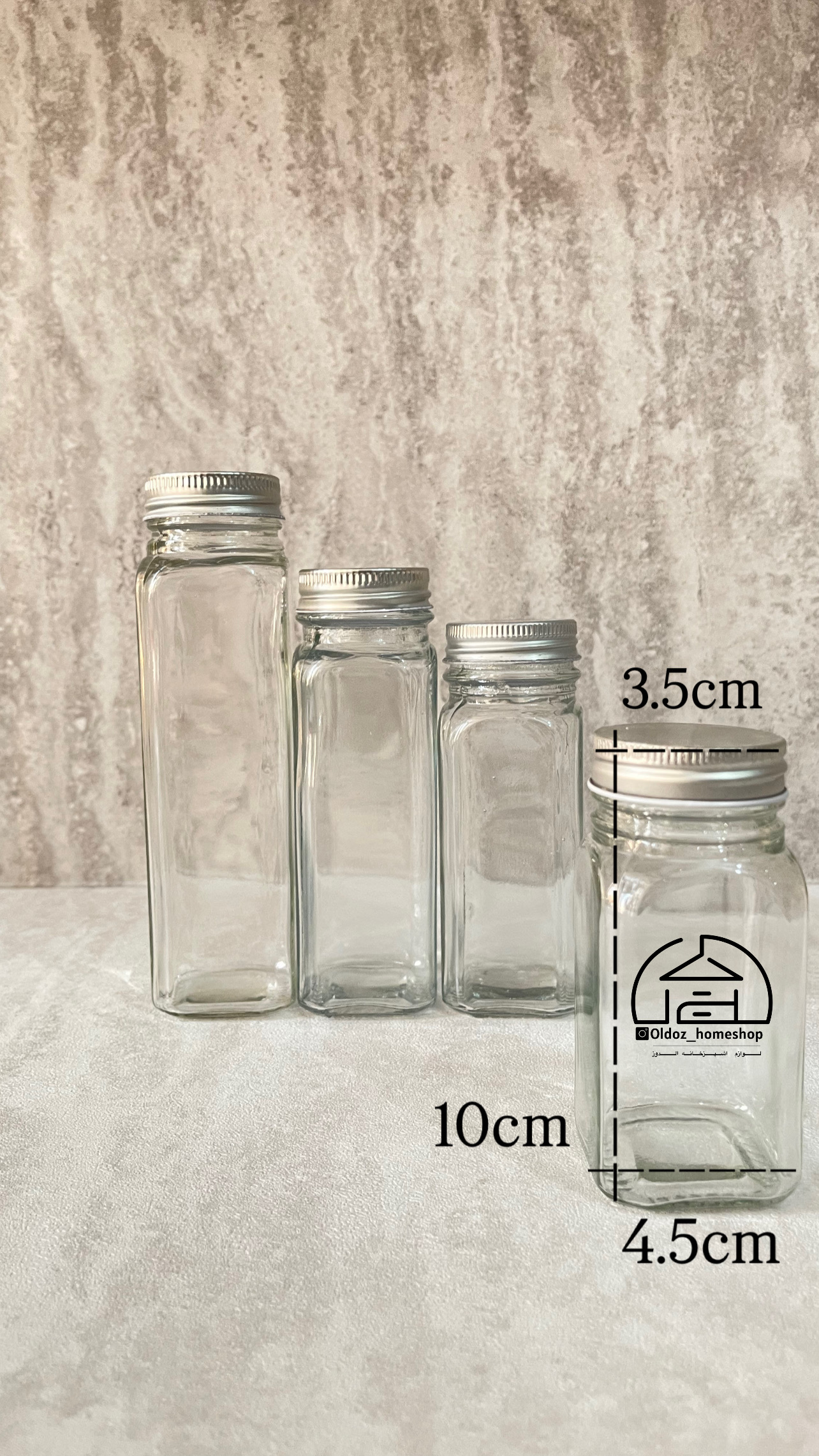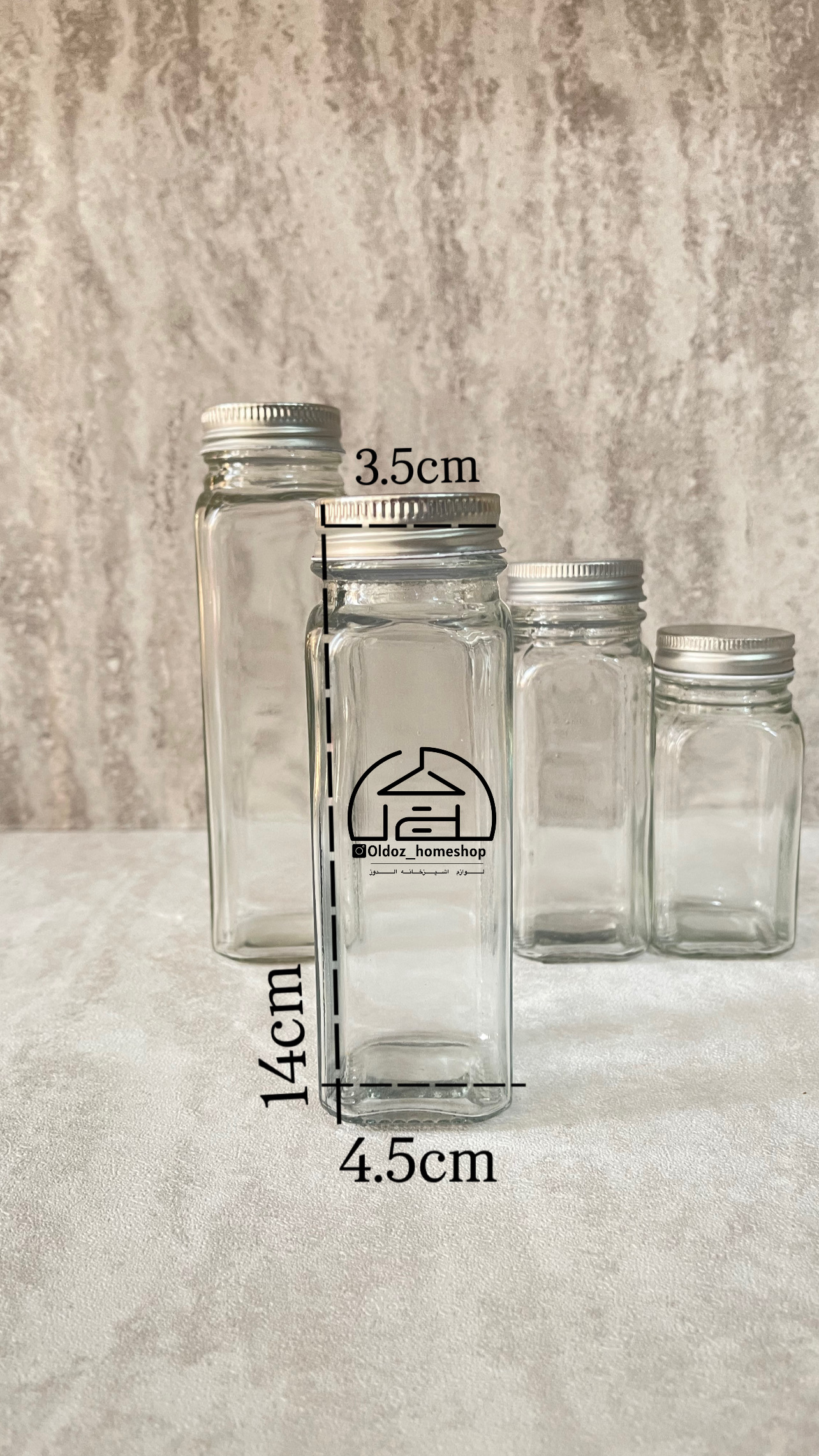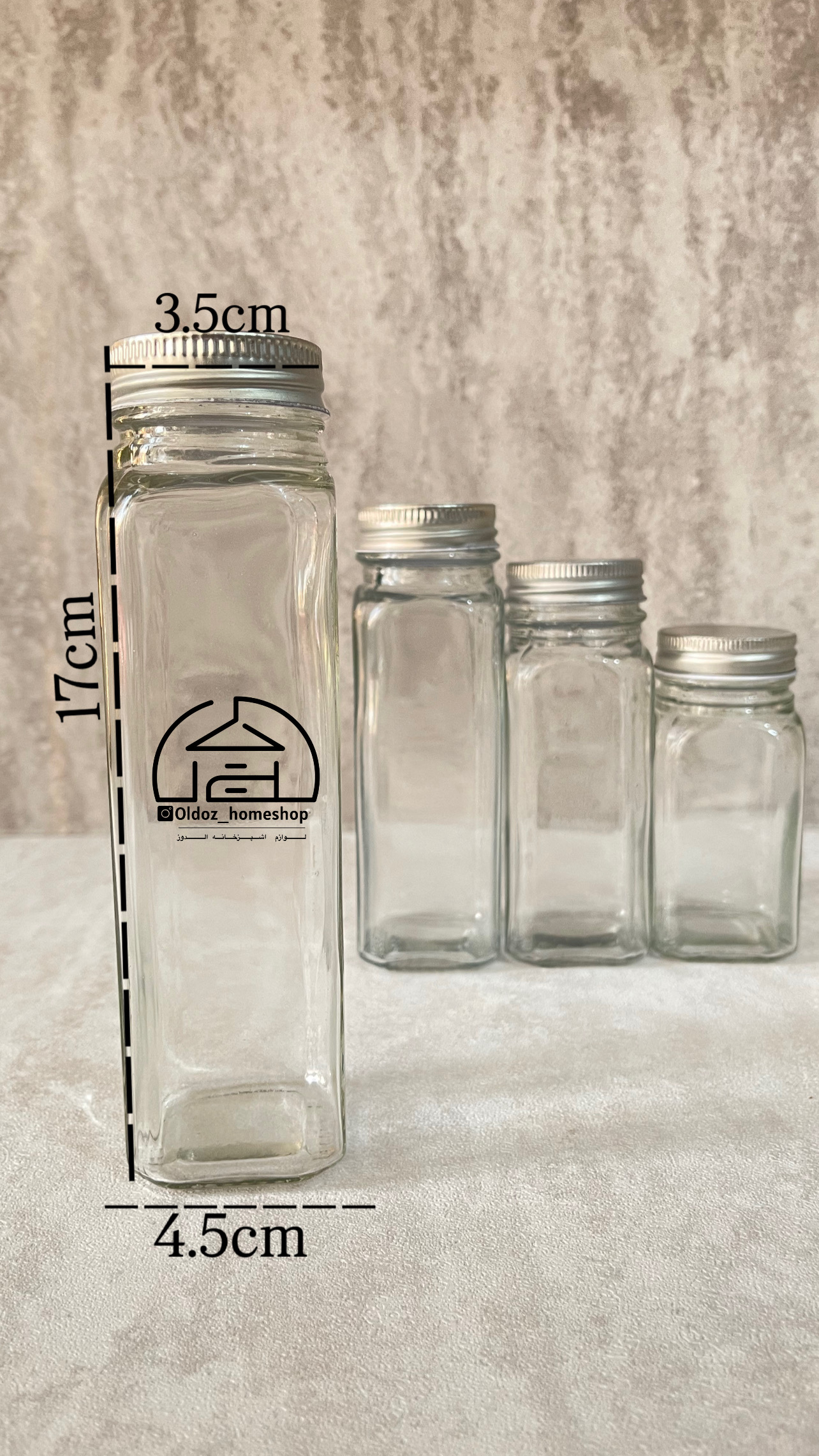 شیشه‌های مکارتی ادویه در سایزبندی مختلف درب استیل