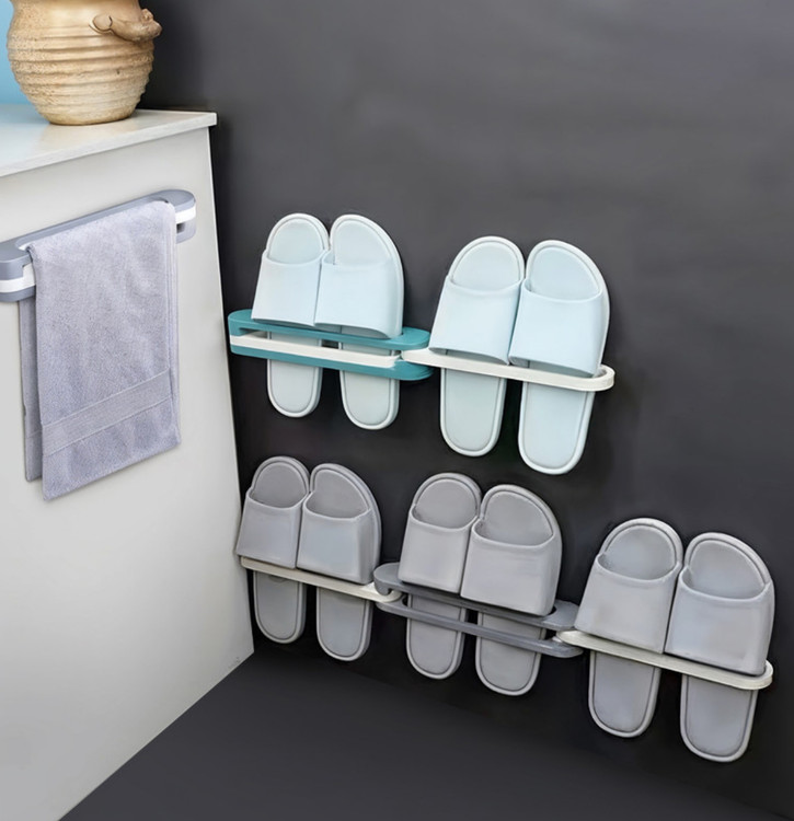 هولدر دمپایی مناسب نصب بر روی دیوار در سرویس بهداشتی، حمام، تراس که با قابلیت باز و بسته شدن 3 جفت دمپایی را در خود جای میدهد و در هر زاویه نصب میشود.